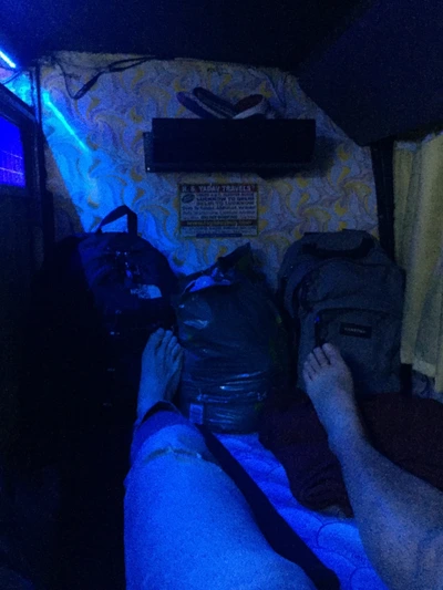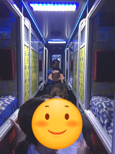 탑승한 버스(Sleeper bus) 내부, 겉으로도 컸으며 내부도 상당히 넓었다(180cm도 다릴 꽤 뻗을 수 있는 길이)
