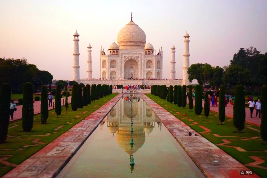 인도 이슬람 예술의 걸작 타지마할은 그야말로 시공을 초월한 절대적인 아름다움을 보여준다. 순백의 대리석은 태양의 각도에 따라 하루에도 몇 번씩 빛깔을 달리하며 보는 사람의 넋을 빼놓고, 웅장한 건물은 중압감은커녕 오히려 공중에 떠있는 듯 신비롭고, 건물과 입구의 수로 및 정원의 완벽한 좌우대칭은 균형미와 정갈함을 느끼게 한다.