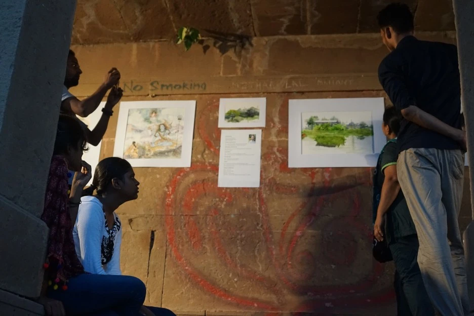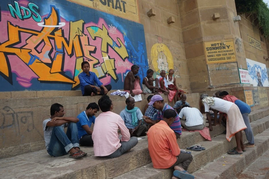 벽에 그림 전시, 한 가트쪽에선 사제로 보이는 사람들도 볼 수 있었다 저녁때 돼서 배가 고파져서, 난 1시간을 걸어 라멘 맛집이라는 집을 찾아갔다.
