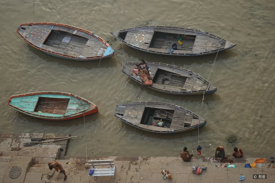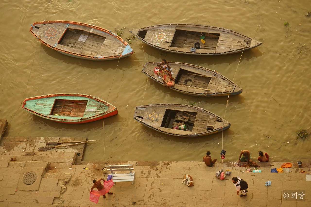 왼쪽이 오리지널 색상. 갠지스강과 어우러진 그들의 삶 구루(Guru; 자아를 터득한 신성한 교육자) / 서민들 / 동물들이 가깝게 공존하는, 바라나시의 풍경 일행 수용씨와 일정이 달라져서, 그날부턴 혼자 다녔다. 이제 한껏 더 어유롭게 보낼 수가 있었다. 오전에는 그저 멍하니, 가트들을 다니며 그곳에 있는 모든 것을 보면서 다녔다.