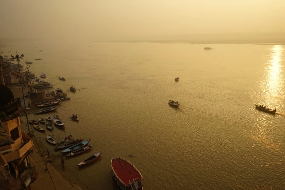 다음날 오전 6:30 숙소에서 내려다본 갠지스강의 일출 풍경