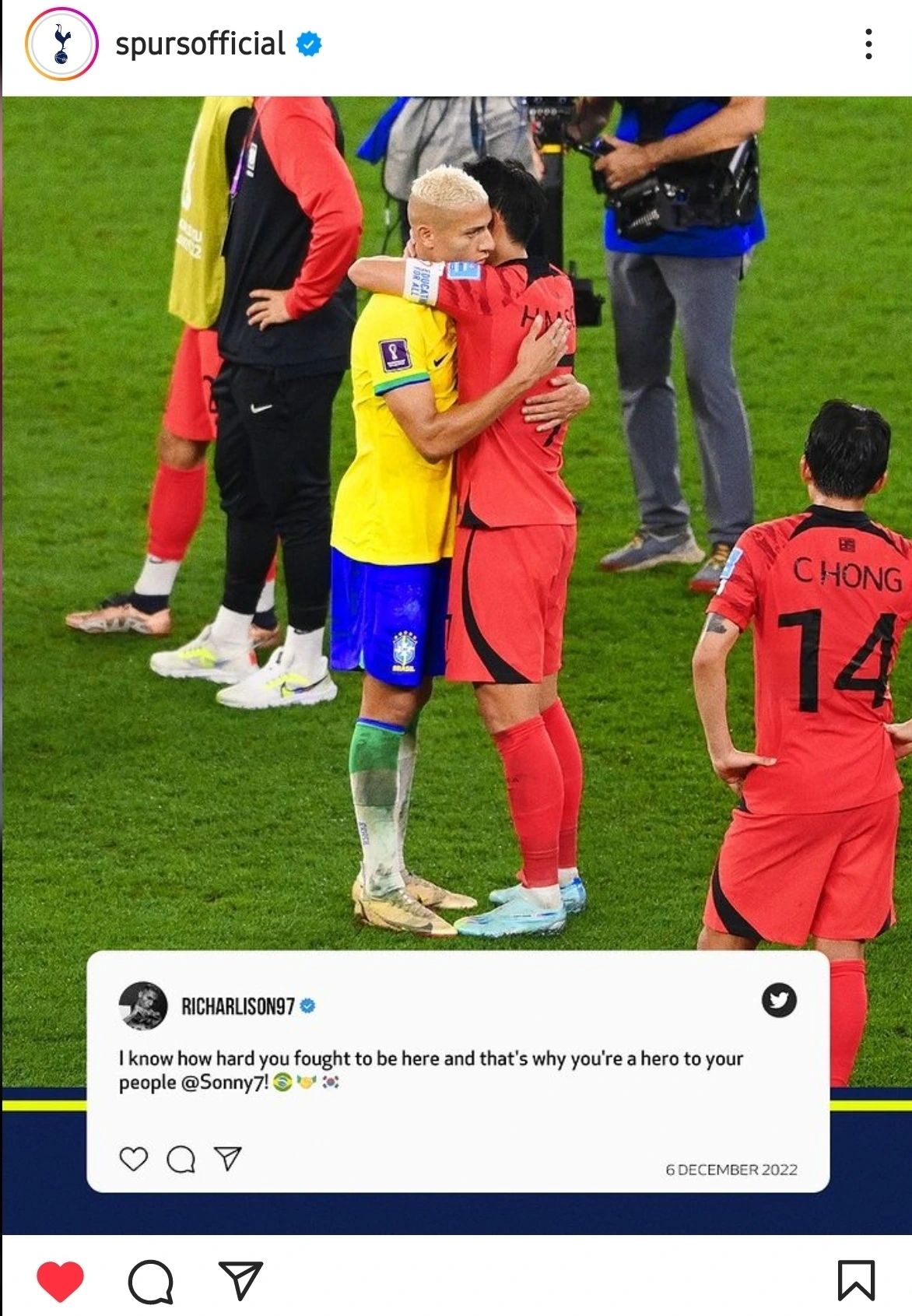 포르투갈전 때 50m 드리블 후 황희찬 결승골 전 송곳 패스한 손흥민<출처: 토트넘 홋스퍼 인스타그램>