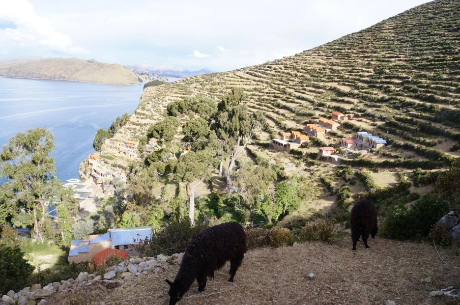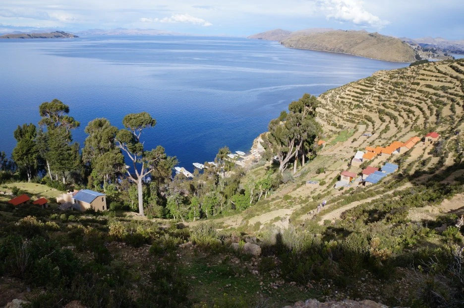 볼리비아 코파카바나의 티티카카 호수(Lake Titicaca). 해발고도 3,810m로 세계에서 가장 높은 곳에 위치한 호수로 유명