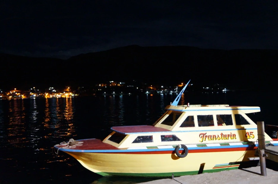 볼리비아에서 페루로 넘어갈 때(코파카바나 - 푸노) 버스에서 내려 배를 타고 들어갔다