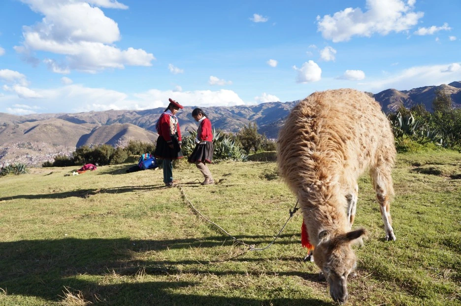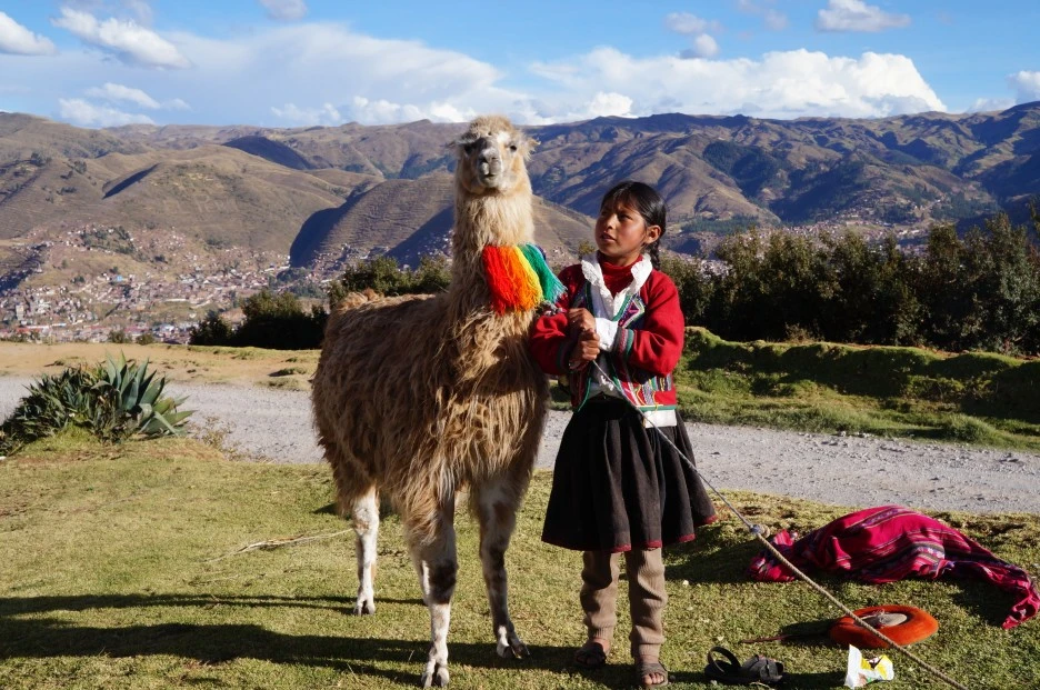 쿠스코 인근 4대 잉카 유적지 중 하나인 삭사이와망(Sacsayhuaman)에서 만난, 라마(Llama)와 페루 전통의상을 입고 그를 관리하던 페루 소녀들