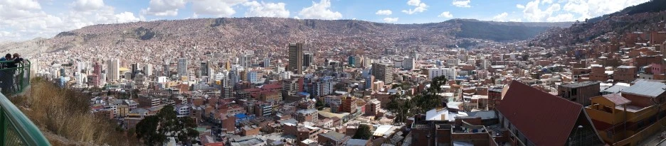 세계에서 가장 높은(해발 3,250m~4,100m) 곳에 수도를 가진 볼리비아 수도 라파즈(La Paz)의 시내가 보이는 전망대