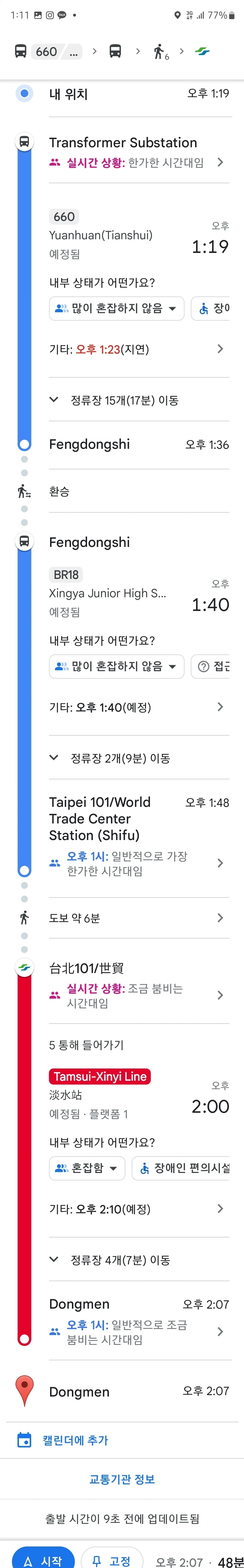원래는 2시면 목적지 동먼(Dongmen)에 도착해야 했으나, 구글맵의 버스는 이렇게 버스 환승을 최적의 루트로 알려주지 않아서 갈 때 고생을 좀 했다.
