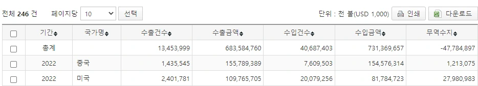 수출규모(억$): 25,906(2020년)/ 수입규모(억$): 20,556(2020년)