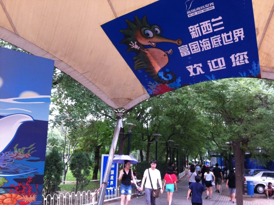 베이징 최고 시설을 자랑하는 수족관이다. 뉴질랜드와 합작해 만든 것으로 내부에는 아시아 최대 길이로 알려진 해저 터널이 있다. 무려 120m에 이르는 해저 터널을 오토레일을 타고 지나다 보면 마치 바다 속을 유영하는 듯한 기분이 든다. 총 6,000여 종의 어류를 볼 수 있다. 상어 먹이주기, 인어공주 등 다채로운 공연도 마련돼 있다.