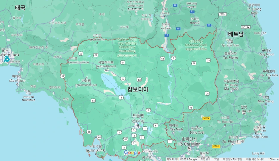 위치: 대륙부 동남아시아/ 경위도: 북위 13°00', 동경 105°00'