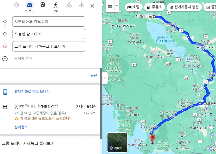 전 대륙, 그 나라들의 주요 도시도 대부분 다녀와본 지금 캄보디아를 생각해 보면, 여느 한국인이 흔하게 가는 여행국가는 아니다. 열심히 일하다 휴가를 떠나는 대부분의 한국인은 휴양지가 괜찮은 곳을 가기 때문이다. 캄보디아는 역사, 관광에 관심이 높은 사람이 주로 택하는 여행지기에 앞의 성격과는 분명 다른 곳이다. 아시아 인도차이나반도의 대륙부 중부 쪽에 위치한 캄보디아는 앙코르와트가 있어 그나마 관광지가 발달한 시엠립, 수도 프놈펜 정도를 제외하곤 여행자들이 많이 가는 곳은 아니다. 그나마 여행을 좀 해본 사람은 서남부의 타이만 바다가 있는 시아누크빌(Sihanoukville)이라는 해안 도시 휴양지가 있어 드물게 가봤을 수도 있지만, 먼저 이곳을 선택해 오기보다는 프놈펜에서 180km 정도기에 가는 경우가 많다고. 정리하면 북부 쪽에 위치한 시엠립에서 프놈펜까진 318km이고, 이를 거쳐 시아누크빌로 가는 경우가 종종 있다고 들었다.