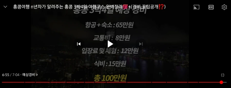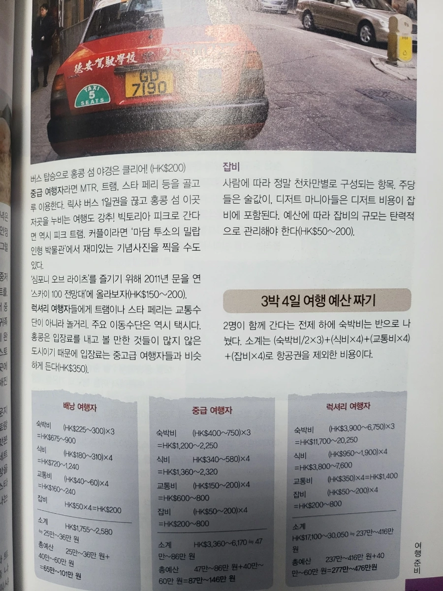 1. 예상 경비 종합 가늠: 좌 <유튜브_여행톡톡> 우 <프렌즈 홍콩ㆍ마카오>
