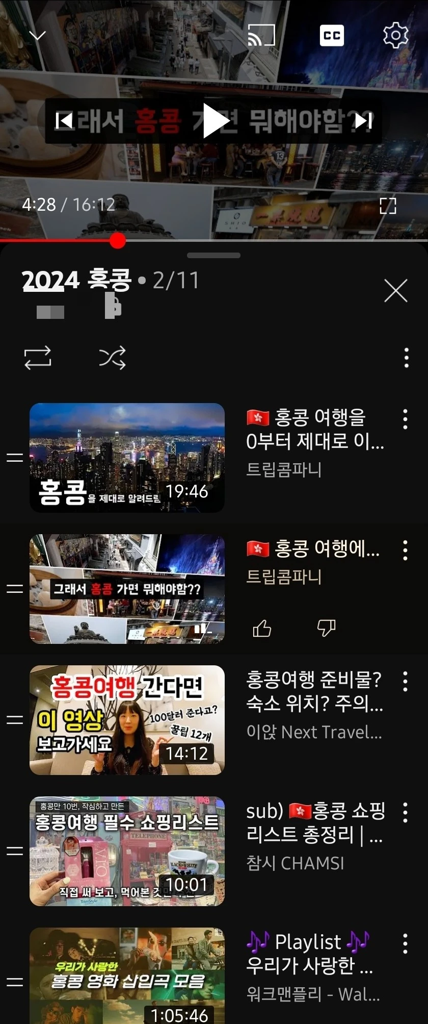 <홍콩여행 참고 유튜브 종합> - 홍콩영화들에 나온 명곡들을 들으며 참고한 여행유튜버들의 콘텐츠