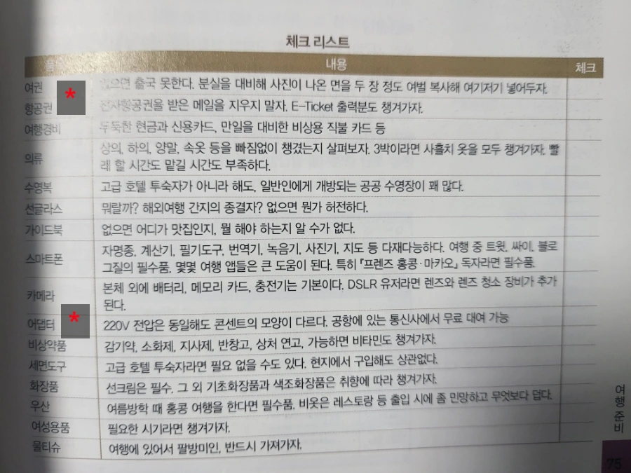 그래도 한 번 훑어볼 필요가 있는 여행 체크리스트. 홍콩여행 시, 필수 준비물은 삼구 어댑터. 그 외엔 각 여행자별로 필요한 것들을 가방에 넣으면 된다. 그렇게, 5박 간의 내 여행 짐은 이렇게 쌌다.