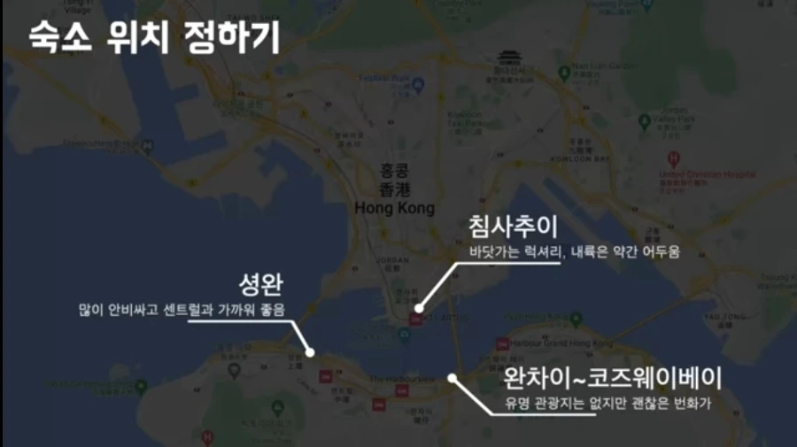 2. 숙소: 침사추이, 셩완, 완차이~코즈웨이베이 주변으로 잡는 게 일반적 <유튜브_트립콤파니>