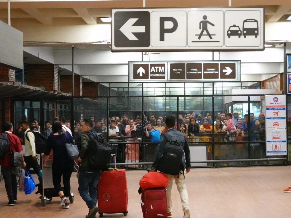 카트만두에 저녁 7시쯤 도착 예정이었으나 1시간 이상 지연돼 8시가 넘어 도착했다. 서둘러 수속을 마치고 카트만두의 번화가인 타멜 구역으로 가야 했다. 입국 전 미리 신청해놓은 온라인 비자 프린트 용지를 immigration 입국장 왼편 비자 발급장에서 60불 두 명 분을 내고, 비자를 받고 오른편 입국장에서 빠르게 수속을 마치고 수하물 수령 칸으로 나갔다.