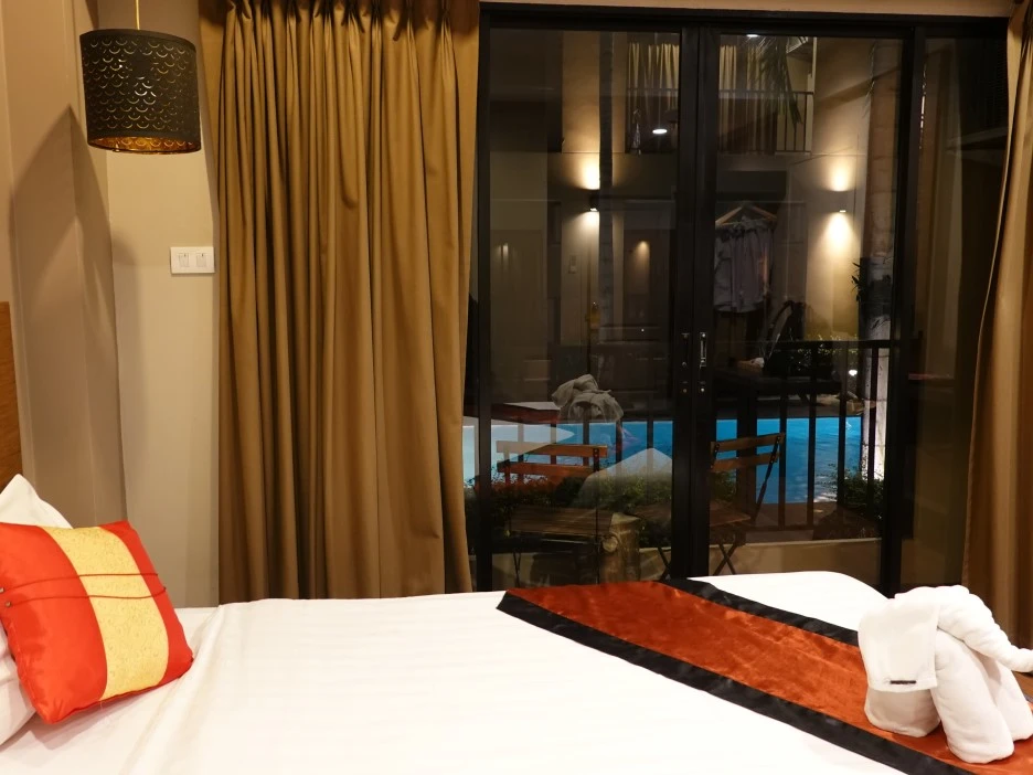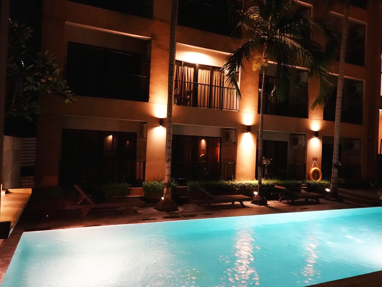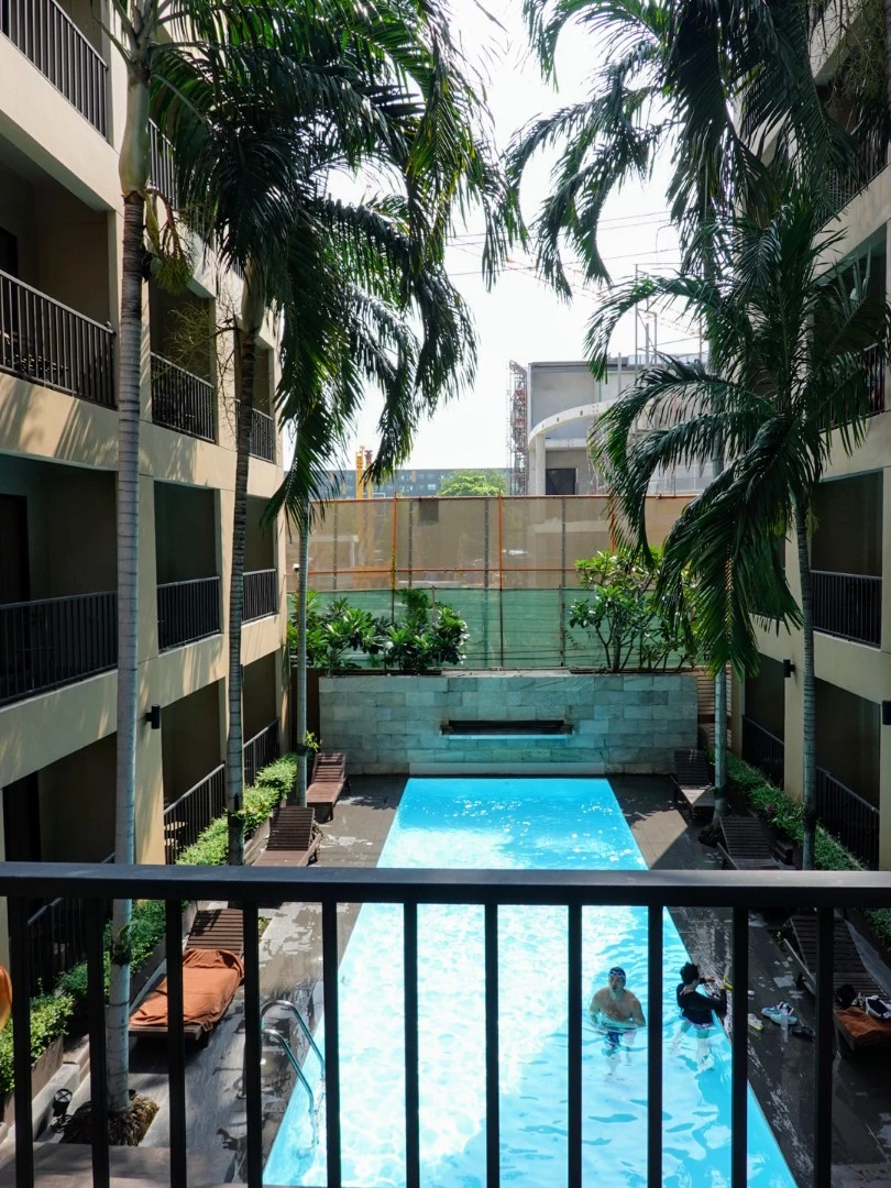 호텔 안쪽 전경. 객실 사이로 수심이 1m가 넘는 수영장이 있어 유용하기도