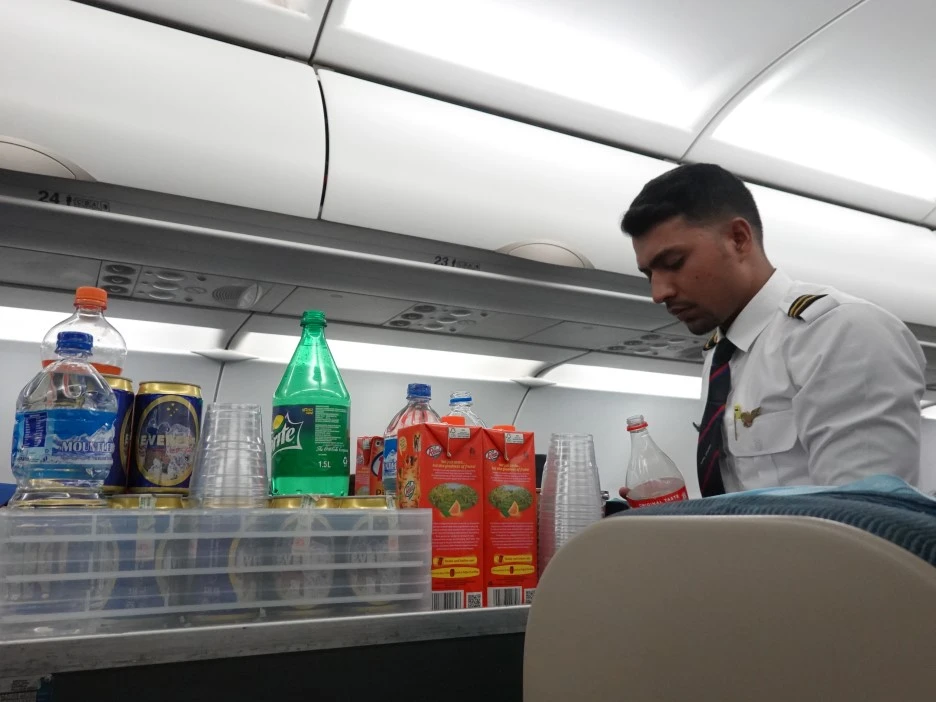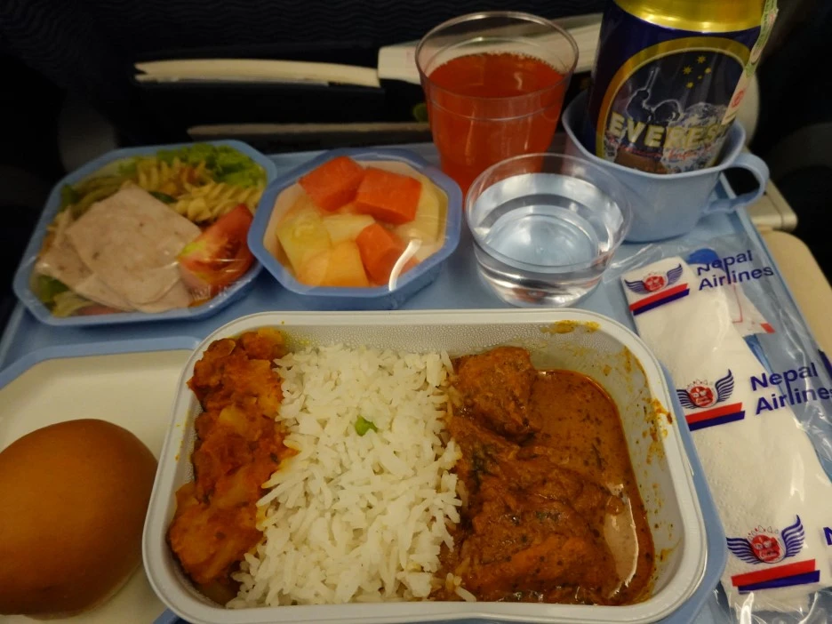 방콕 - 카트만두까진 3시간 반. 기본적인 음료들과 / 무난한 치킨 커리 메뉴 등의 기내식