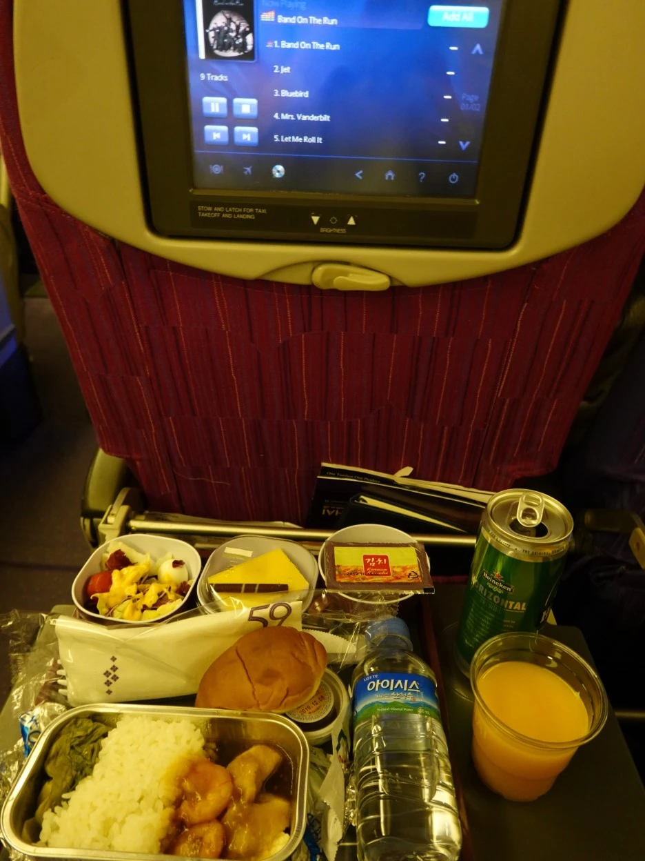 앞서 썼던 카드 국제공항 라운지 키 서비스로 여기서 무료 라운지 서비스를 이용할까도 했지만, 돌아오는 귀국 편 때 쓰기로 했다. 이렇듯, 여행 시에는 의외의 상황에서 여러 옵션이 생기는데 그중 최선의 선택을 하는 습관을 들이는 게 좋다. 비행기에 탑승해 또 식사를 할 것이므로 조금만 버티면 되었기에, 아버지가 배고프실 때 즈음엔 간식을 조금씩 드렸다.
