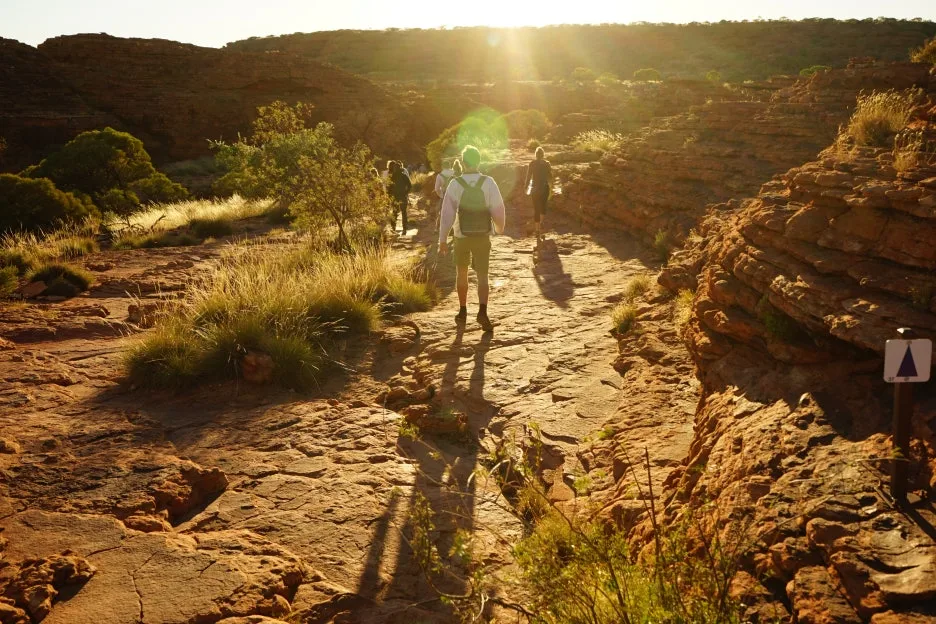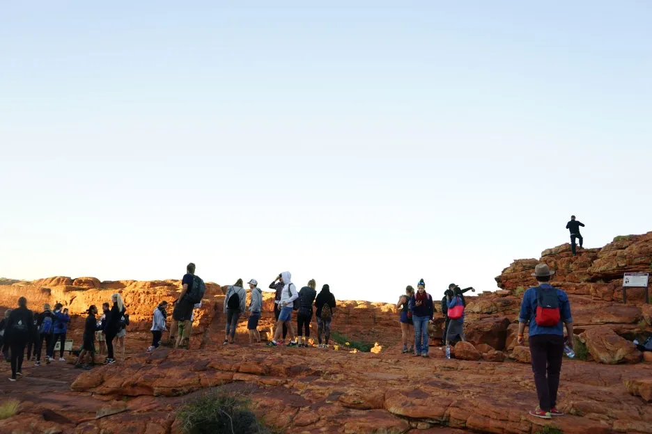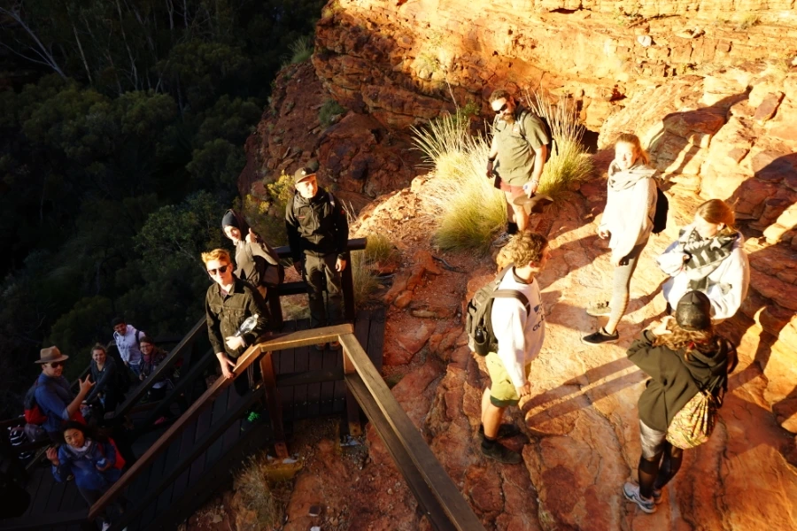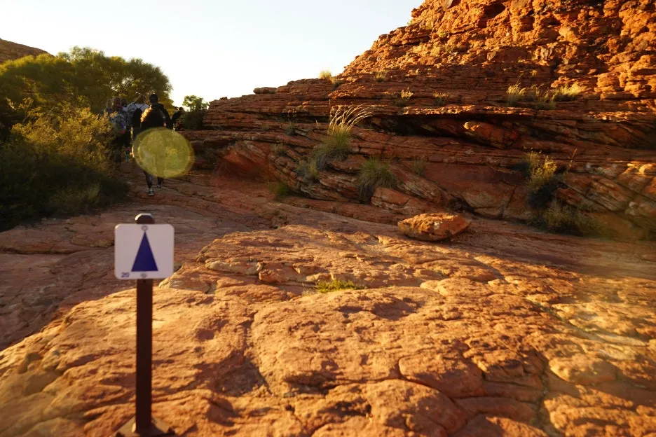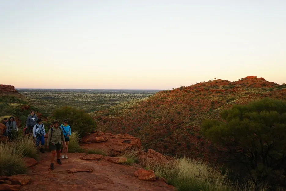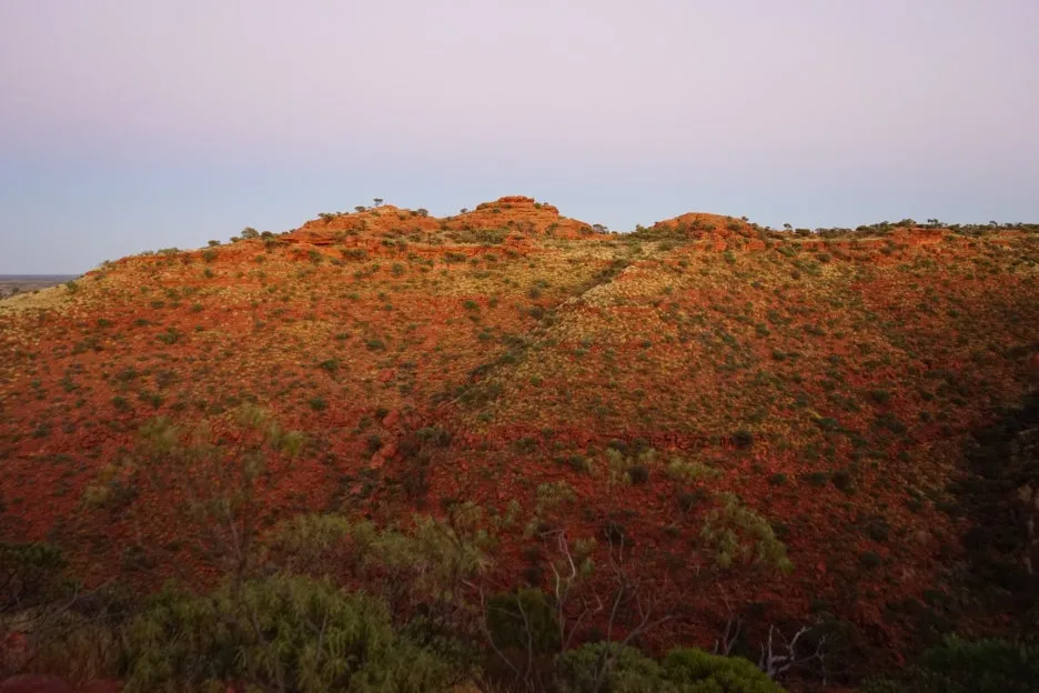6:24 일출이 호주 대자연 킹스캐니언 곳곳을 비추는 모습을 보며 트레킹을 이어감