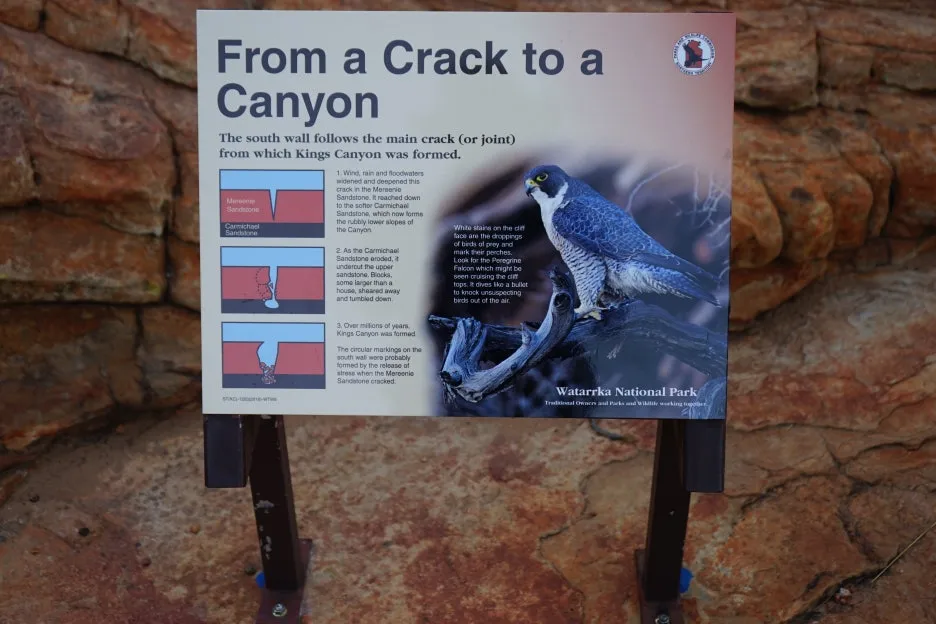 조지길 산맥 주변의 사막은 3억 5,000만 년 전의 마이리니 사암군이며 4억 5,000년 전의 카마이클 사암도 깔려 있다. 과학자들은 산맥에 형성된 수많은 깊은 흠은 더 오래된 사암이 잘려서 만들어졌으며 더 이후에 만들어진 사암이 깎여나가서 지금과 같이 수직에 가까운 절벽이 완성되었다는 데 모두 동의하고 있다. 이 지역이 더 습했을 때 만들어진 사암 일부는 이 지역의 그늘진 협곡과 골짜기에 남아 있다. 와타르카 국립공원은 지난 2만 년 이상 원주민인 루리챠 족의 근거지였는데, 그 덕분에 원주민의 벽화와 암각화가 잘 보존되어 있다. 10킬로미터에 달하는 킹스캐니언 일주로 곳곳에 아름다운 풍경이 펼쳐져 있다.