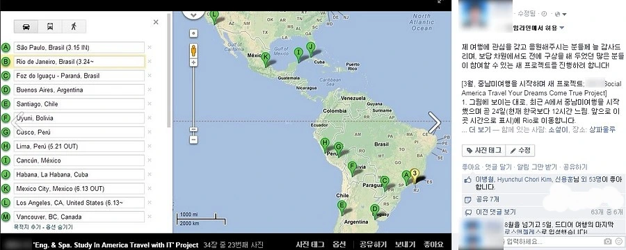 여행하는 과정을 국내외로 오프라인 및 웹을 통해 직간접으로 SNS를 통해 소통했다. 매일 1 포스팅 이상 페이스북과 인스타 등으로 올리는 등, 많은 분과 함께했던 <희랑의 소셜 세계여행기>을 기획하고 진행하였다.