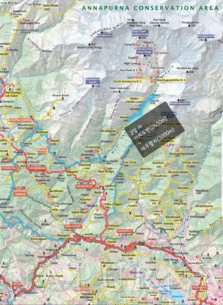 어퍼도반(2,600m)-> 히말라야(2,920m)-> 데우랄리(3,200m) 숙박