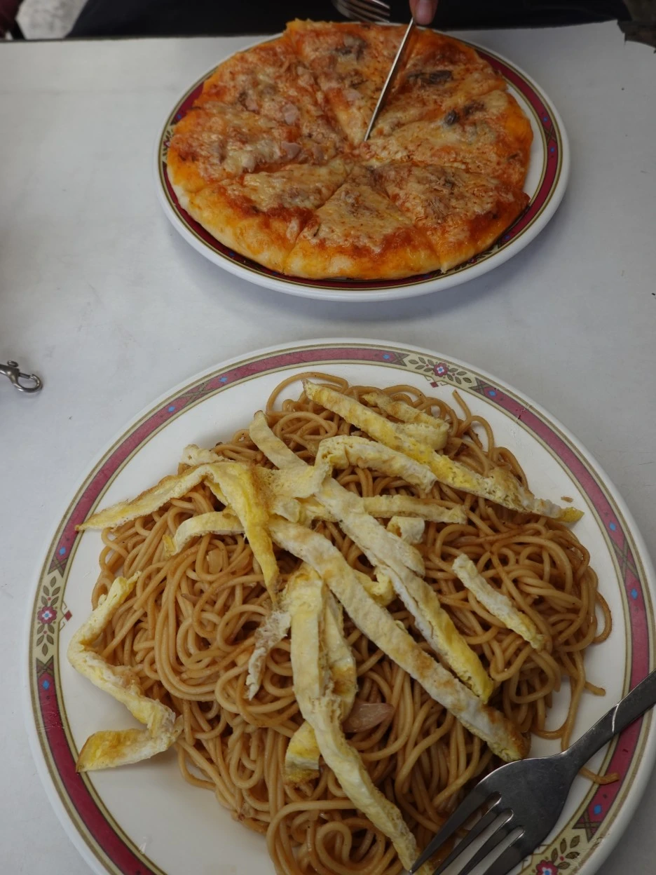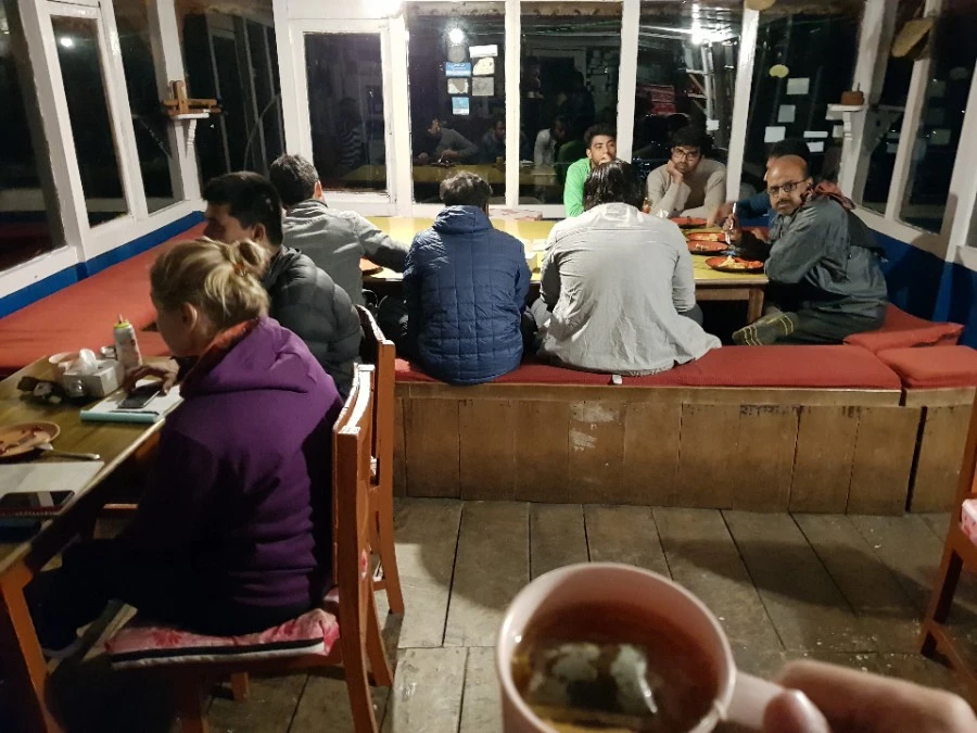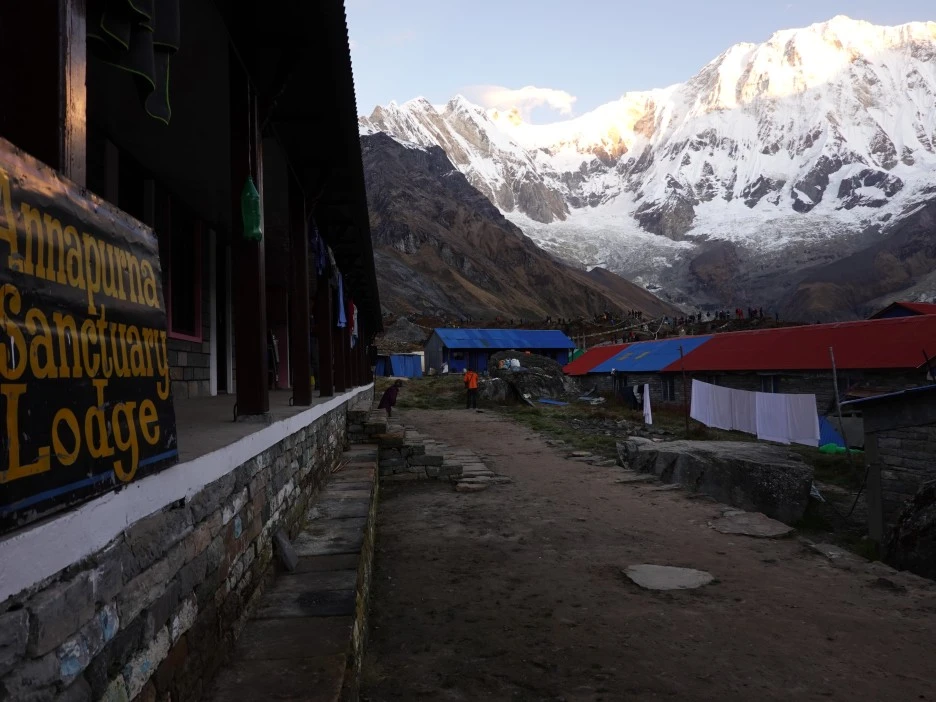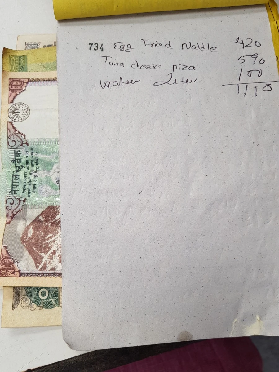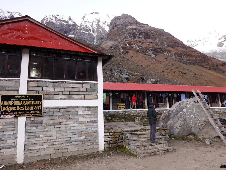 아버지랑 먼저 나온 피자를 맛있게 먹고 보니, 면이 나오기도 전에 거의 다 먹고 배가 불러왔다. 면이 나올 때 즈음엔 이미 우리 부자는 이미 배가 다 불러있었고 피자도 한두 조각만 남았었다. 그때 마침 옆에서 쉬고 있던 한 트레커가 "힘들다"라고 하시는 얘기를 듣고, 반가워 그에게 인사를 건넸다. 인도에서 일하고 있는 분인데 휴가로 이곳에 오셨다고 했다. 마침 그분은 이제 음식을 시킬 거라고 하셨기에, 면을 피자와 함께 그냥 드리려고 했다. 다행히 면을 드시겠다고 했는데, 하지만 롯지에서 1인 1 주문 이상은 해야 했기에 음료를 시켜주셨고 그거로 우리 부자는 250R(2,500원)의 귀한 콜라를 나눠마실 수 있었다. 이분도 ABC 코스로 다녀오신다고 했던 거 같은데, 무사히 잘 다녀오셨으리라 믿는다.