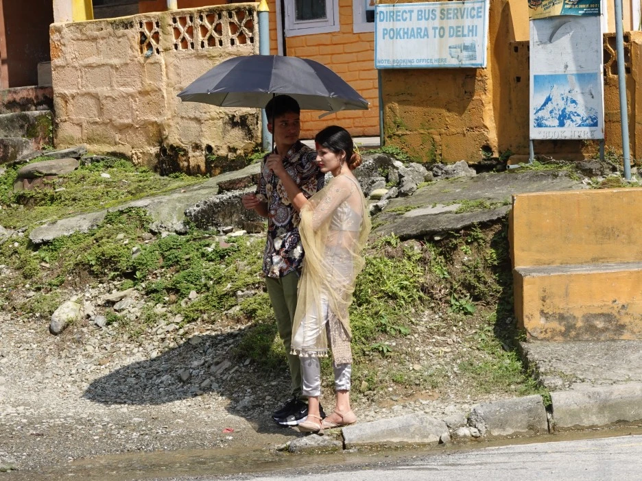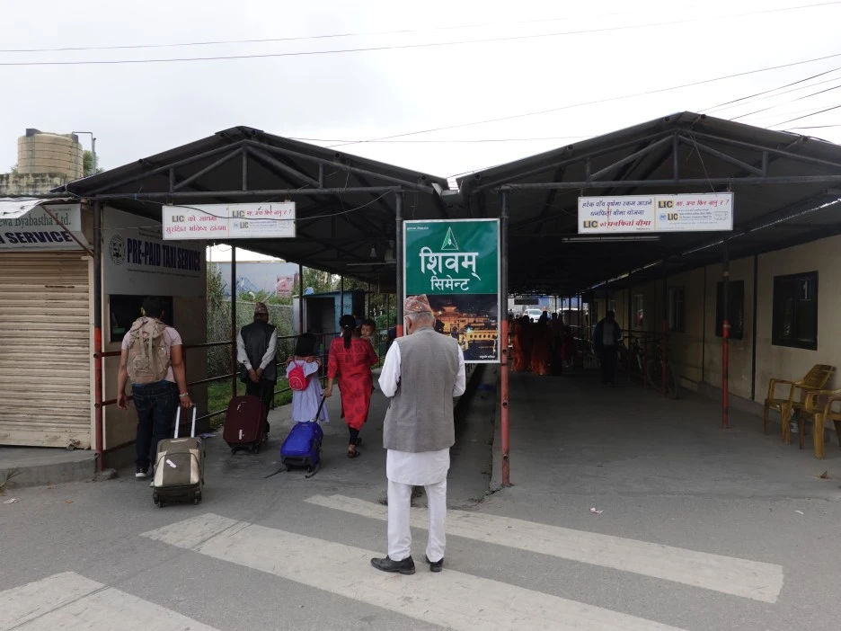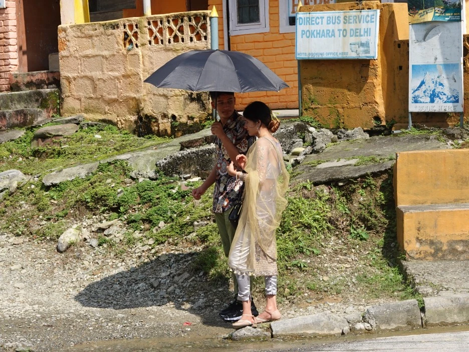 사진 뒤편에서 포카라에서 델리로 가는 직행버스 티켓 구매처도 보인다