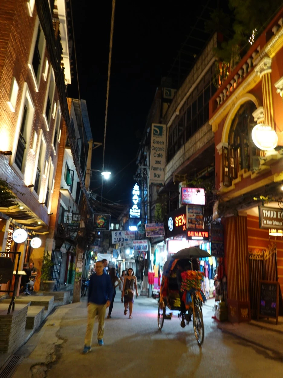 다샤인 기간이 끝나는 날 밤의 타멜 거리는 사람이 많은 편이었으나 2년 전 비슷하게 겪은 도시인 인도 델리에 비하면 다소 적었고 공기도 그에 비하면 나쁘지 않았다. 난 괜찮았지만, 아버지는 그래도 한국에 비해 매연이 잘 정화되지 않고 차와 사람들이 무질서하게 다니는 이곳이 신선한 충격이셨을 듯하다. 이렇듯 상황을 보고 생각하고 느끼는 건'본인이 갖고 있던 예상과 경험으로 쌓는 무의식의 결과물'이라고 생각한다.