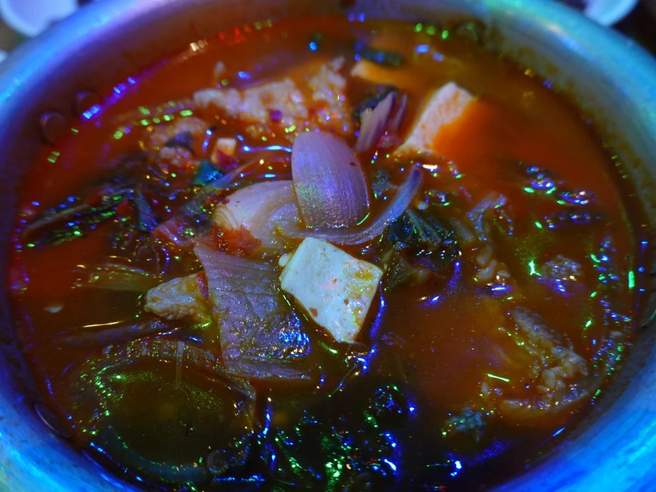 적절히 익은 김치와 돼지고기의 환상 조합의 그 김치찌개를 카트만두에서!