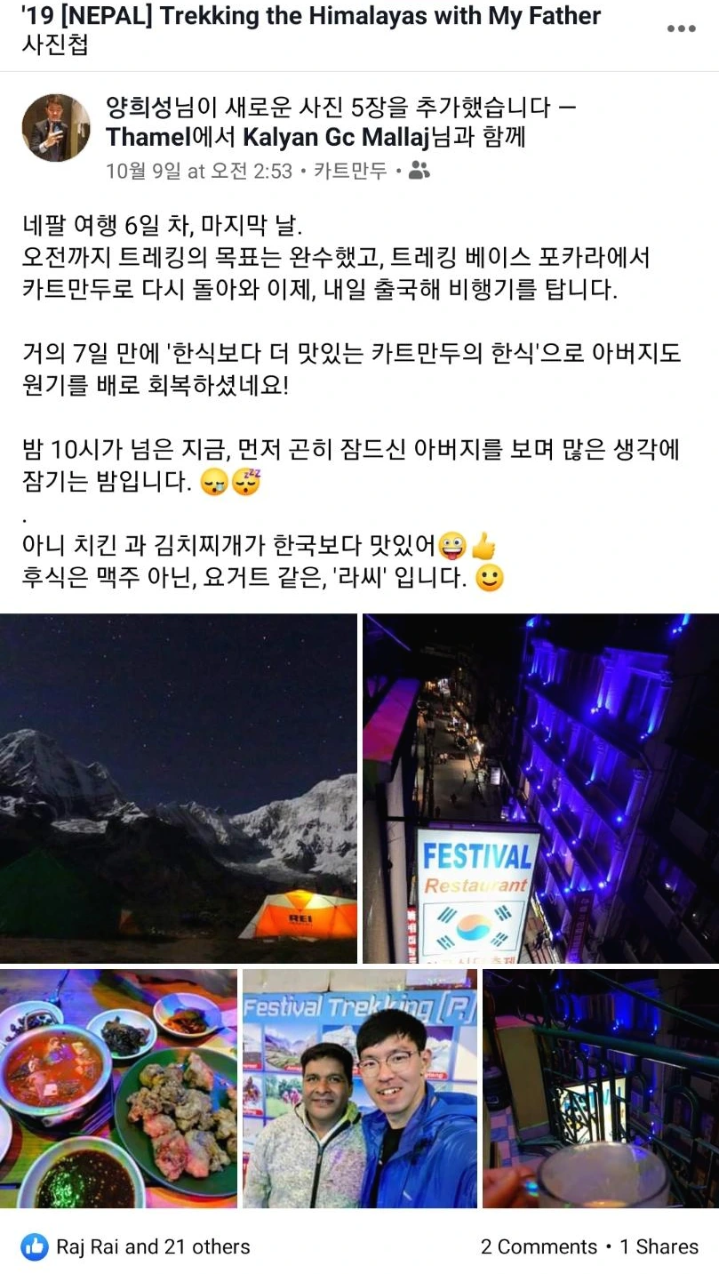 이분이 한국인들에 정을 베풀고 최선을 다해 네팔 여행에 대해 알려주시는 만큼, 한국 여행자 혹은 외국인 여행자분들이 더 많이 이곳에 방문해주시면 좋겠다는 생각이 들었다. 난 이분을 원래 알지도 않았고 어떠한 관계도 없던 사이임을 밝힌다.