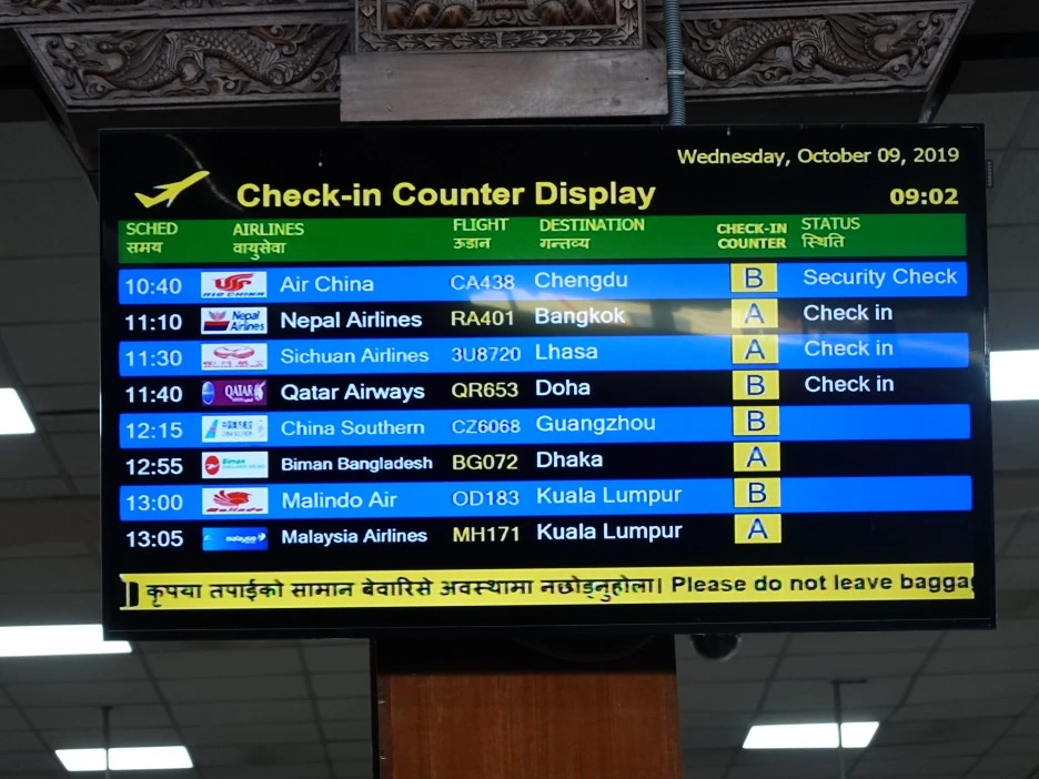 11시 10분 방콕행 네팔 에어라인이 보인다. 체크인을 하며 보낼 짐을 방콕 공항으로 보냈다