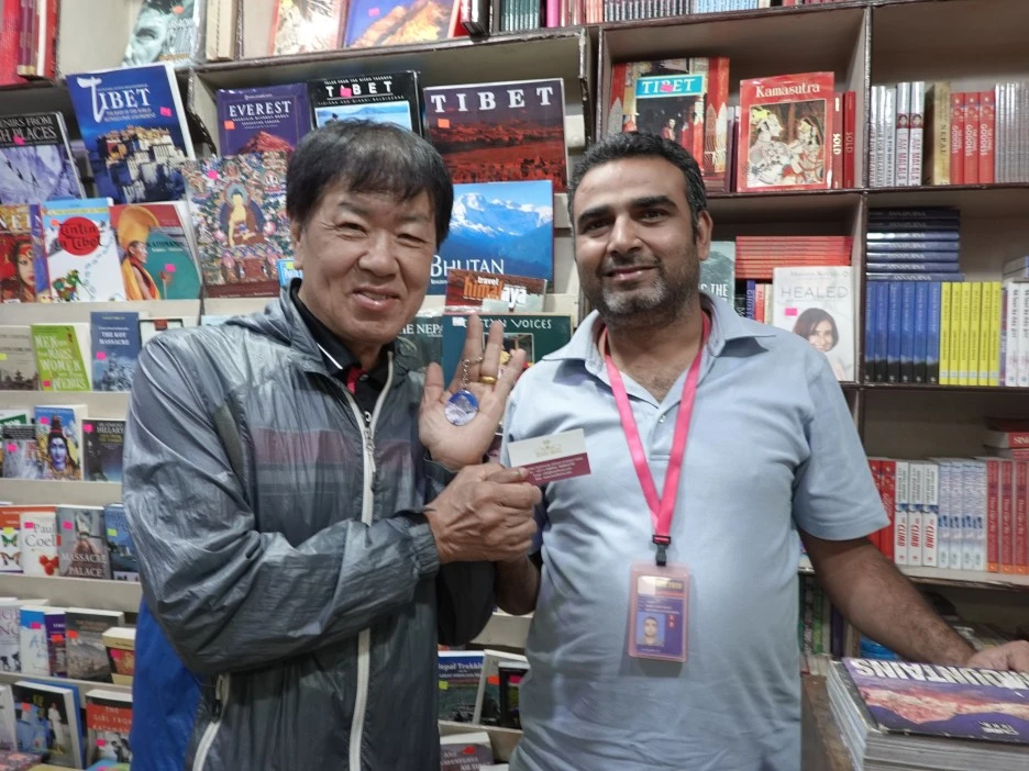 출국 수속을 하러 들어가는 길에 있는 상점들 중 한 곳에 들어갔다. 루피가 조금 남았기 때문이다. 아버지께 맘에 드는 기념품을 고르시라고 했다. 그러니 저걸 고르셨는데, 루피가 아주 소액 부족했고 최소인 1달러도 없어 값을 지불하기 애매한 상황이었다. 난 정중히 사장님으로 보이는 점원 분에게 이런 사정을 말씀드렸더니, 그가 웃으며 흔쾌히 조금 할인해주신 덕에 저 히말라야 열쇠고리를 살 수 있었다. 마음 씀씀이가 참 감사했다. 난 이런 네팔 사람들이 좋았고 이로써 아버지의 '행복한 추억의 선물'이 하나 더 생겨 더불어 좋았다.