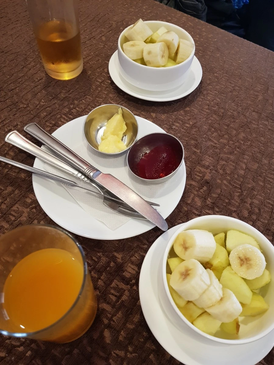 이곳은 음식이 깔끔하고 괜찮게 나온다고 추천해주셨었는데, 그렇게 잘 나왔다. 서양식의 Continental 스타일 조식. 과일과 음료/ 빵과 소시지, 삶은 달걀/ 후식은 커피. 맛도 깔끔해서 좋았고 부족하면 더 달라고 했다. 생각했던 것보다 참 훌륭했다. 식사 때 보통 삶은 달걀만 나와도 든든하게 먹을 수 있고, 그럼 기본은 되는 거 같다. 값만 비싸게 받고 실속이 없는 타 호텔 조식보다 내가 선호하는 타입이었다. 뭐든 잘 드시는 아버지 역시 잘 드셨고, 나도 잘 먹고 네팔에서의 마지막 만찬을 하고 가기에 꽤 괜찮았던 식사.