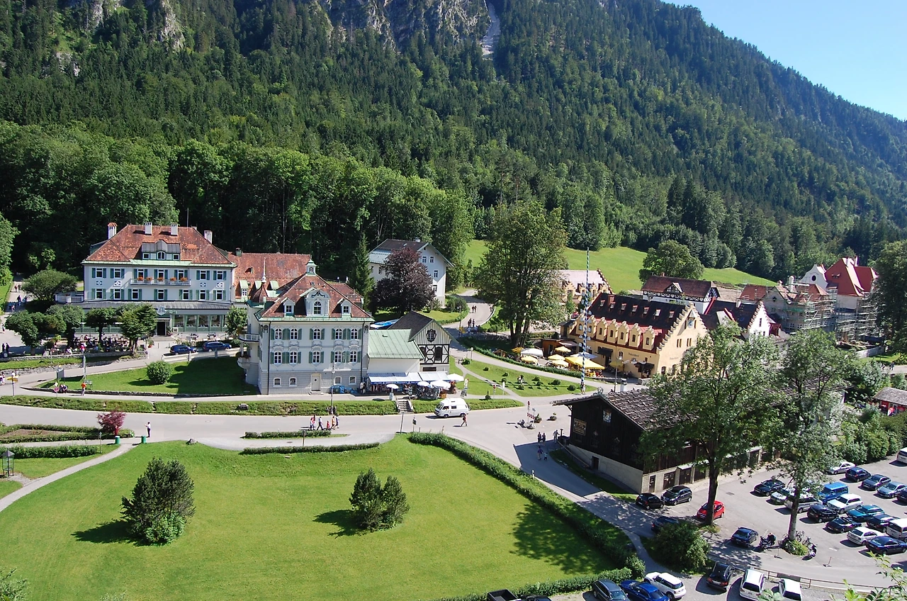 골짜기를 사이에 두고 노이슈반슈타인성(城)과 마주보고 있다. 루트비히 2세의 아버지이자 바이에른의 선제후인 막시밀리안 2세(Maximilian Ⅱ)가 지은 성이다. 성 안에는 동양의 미술품과 예술작품 등이 보관되어 있으며, 3층에는 왕이 작곡가 빌헬름 바그너(Wilhelm Richard Wagner)와 함께 연주한 피아노가 전시되어 있다.