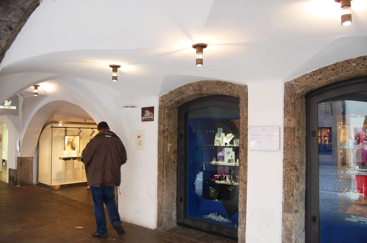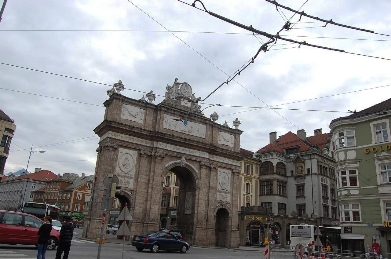 구시가지는 이미 12세기에 건설되었으며, 15세기에는 지방도시로서의 지위를 확립하였다. 당시 이곳에 거소(居所)를 두었던 황제 막시밀리안 1세가 건조한 ‘황금의 지붕’은 지금 도시의 상징이다. 1500년에 지어진 '금의 지붕'(Goldenes Dachl)은 인스브루크에서 가장 유명한 건축물로 건물 전면에 나와 있는 발코니의 지붕이 모두 금으로 덮여있는 독특한 건물이다. 1996년부터는 박물관으로 사용되고 있다. 두 개의 탑이 인상적인 성 야콥 성당(Dom zu St. Jakob) 역시 이곳의 중요한 문화유산이다.