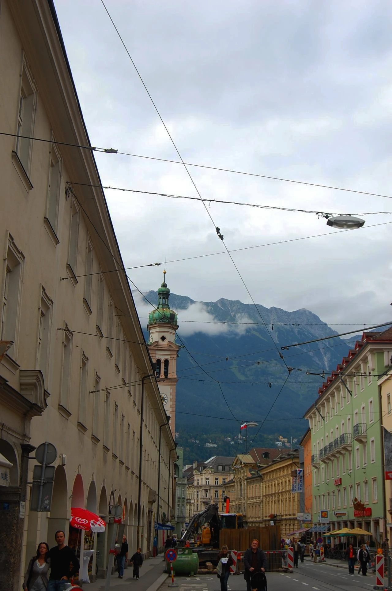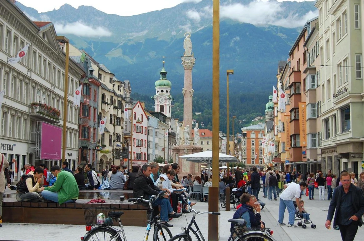 1429년에 티롤(Tirol)의 주도가 되었고 1490년대에 막시밀리안 1세(Maximilian I)의 황실이 옮겨오면서 이곳은 유럽의 정치, 문화 중심지가 되는 영광을 누리기도 했다. 1938년 나치(NAZI)에 합병되었으며, 1943년부터 1945년까지 계속된 폭격 시험으로 인해 도시 전체가 큰 피해를 입었다.