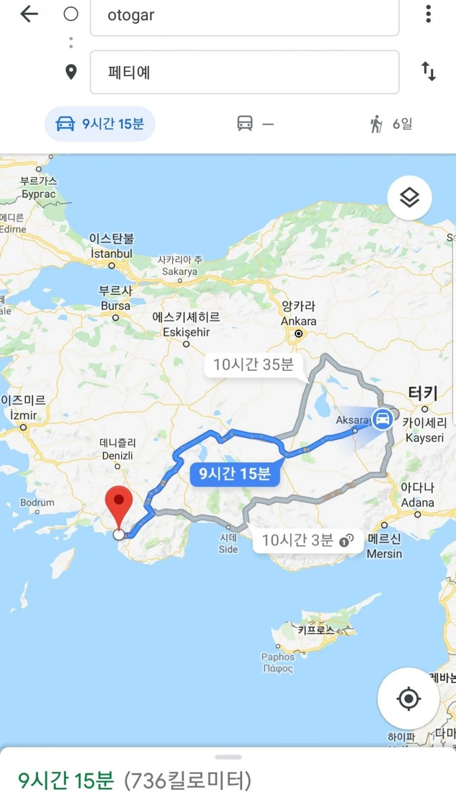 그렇게 10시간 정도를 달린 야간버스는, 드디어 오전 8시 정도에 소도시 페티예 버스정류장에 도착했다!