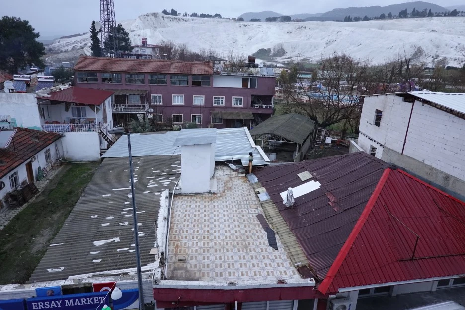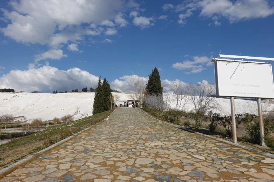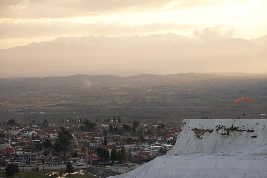 파묵칼레는 터키어로 ‘목화의 성’이라는 뜻으로 경사면을 흐르는 온천수가 빚어낸 장관 때문에 붙은 이름이다. 석회성분을 다량 함유한 이곳의 온천수가 수 세기 동안 바위 위를 흐르면서 표면을 탄산칼슘 결정체로 뒤덮어 마치 하얀 목화로 만든 성을 연상시키기 때문이다.