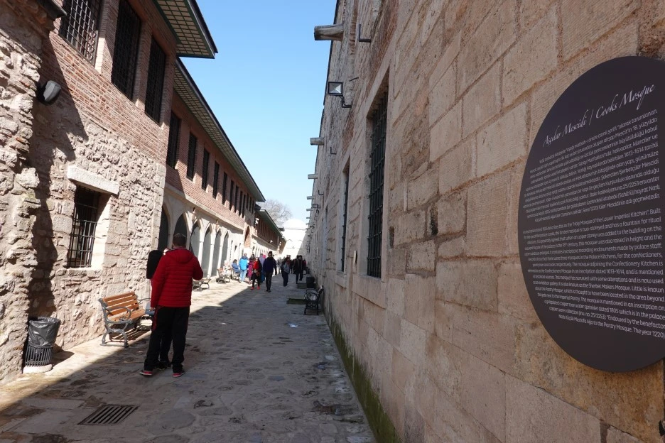 궁전은 세 개의 문과 네 개의 중정(中庭)이 있다. 제1중정에는 비잔티움 제국 유스티니아누스 1세 때 지은 하기아 이레네 성당이 있다. 이곳은 오스만튀르크 제국이 비잔티움 제국을 정복한 후에도 원래 형태로 남겨 두었다.