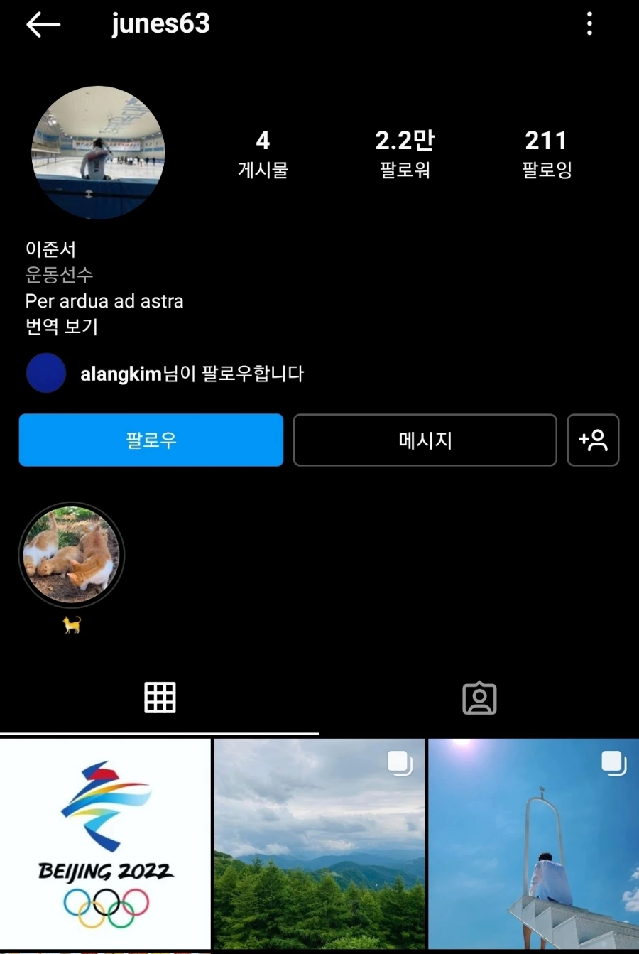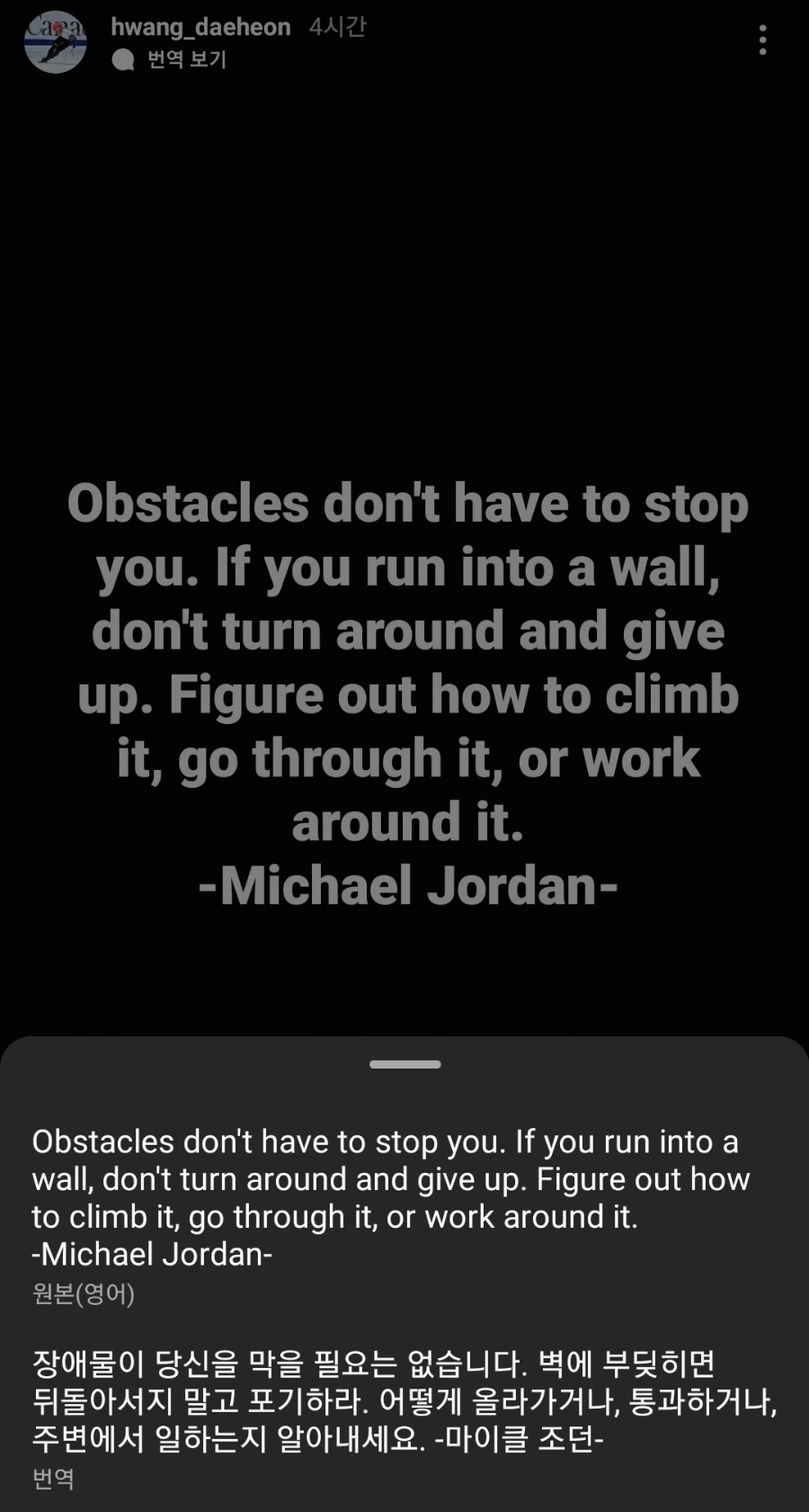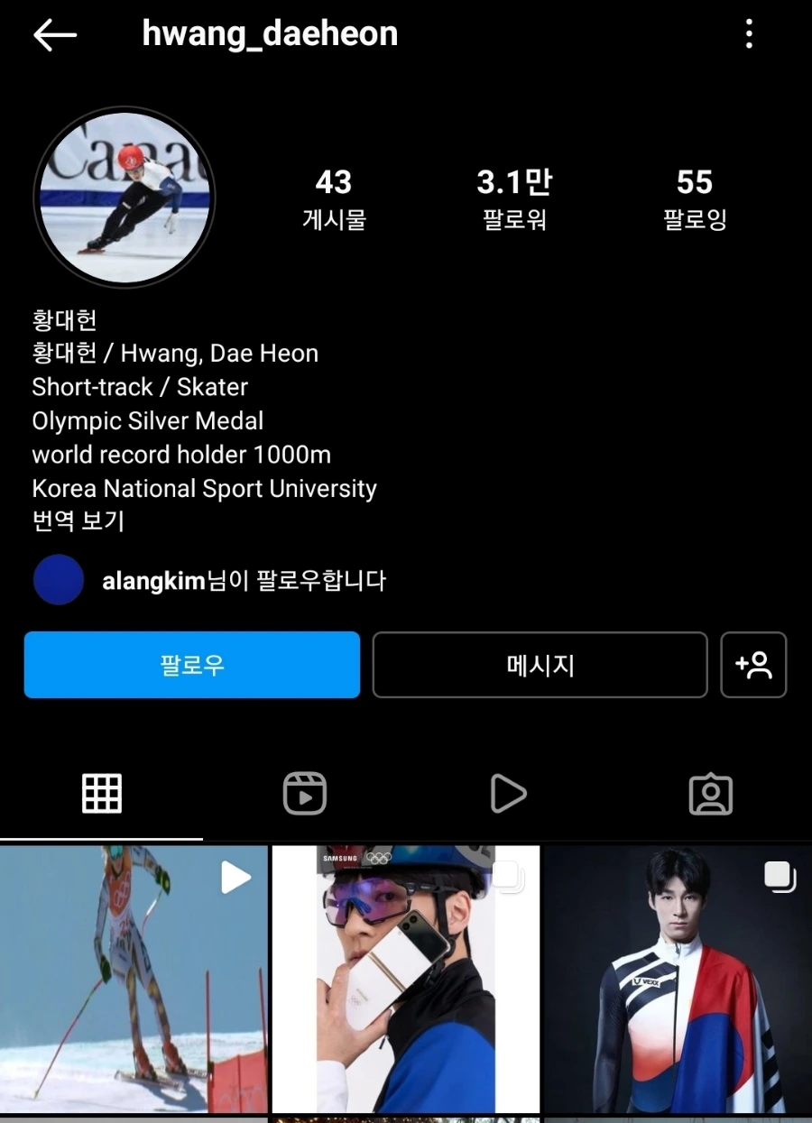 황대헌선수 인스타 / 당시 그의 마음을 알 수 있는 글
