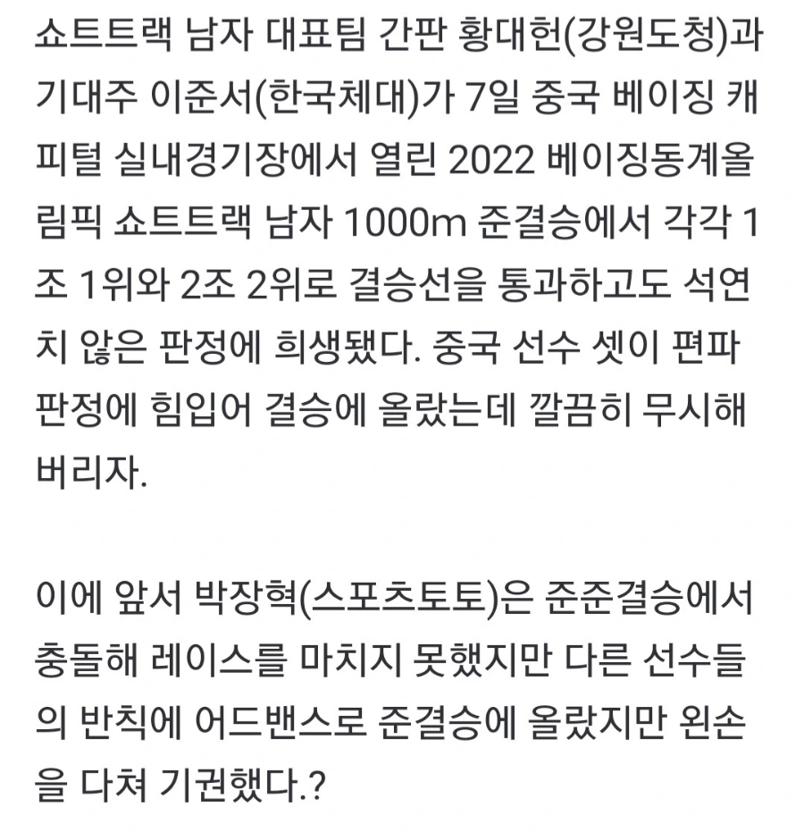 그나저나 #황대헌선수 , #이준서선수 마음은 오죽할까.