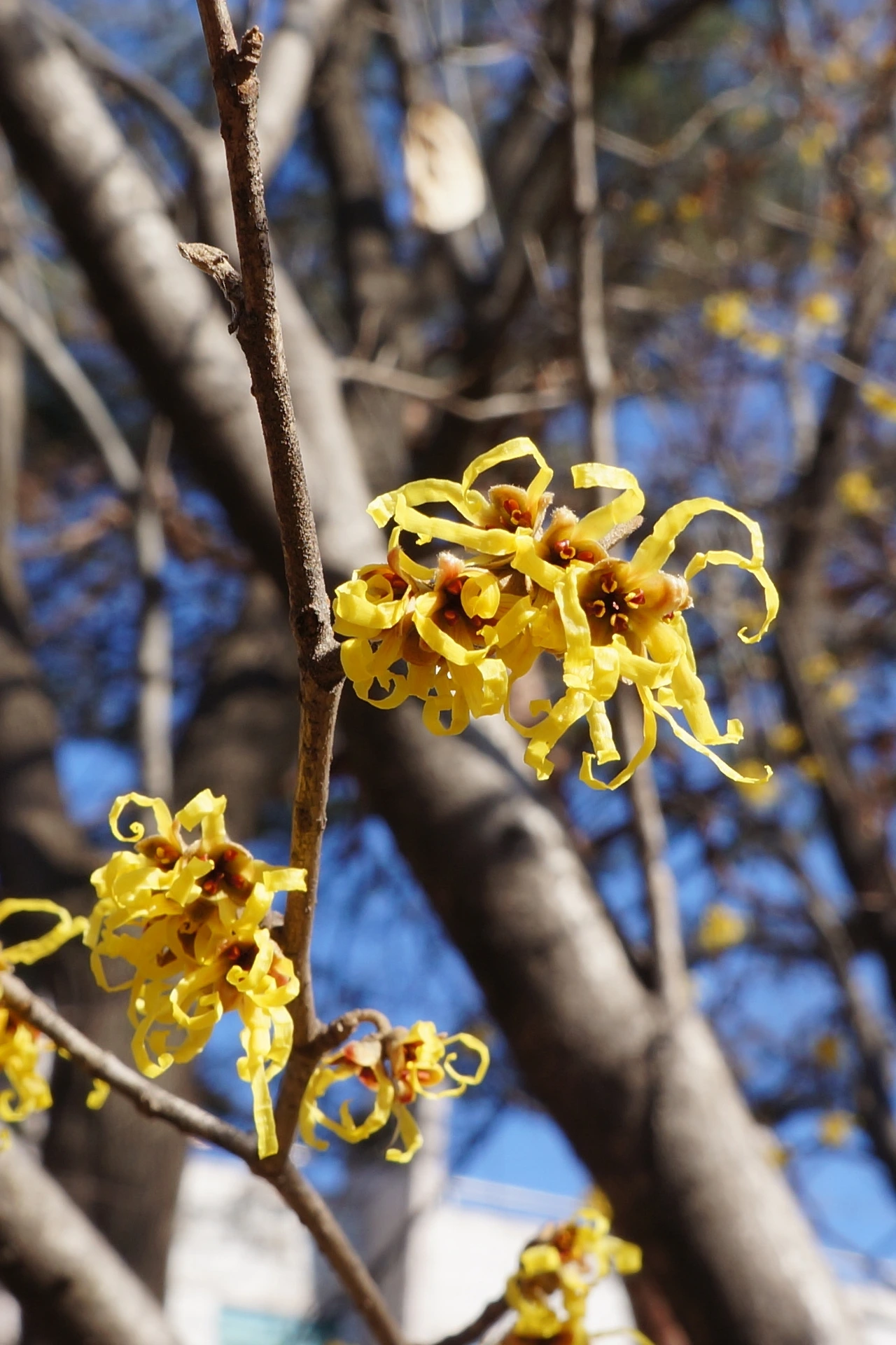 이 땅에서 풍년화의 역사는 그리 길지 않습니다. 풍년화는 일본 원산으로 우리나라엔 지난 1923년 서울임업시험장에 처음 도입됐다고 합니다. 일본 사람들은 풍년화를 풍작을 의미하는 ‘만사쿠(まんさく)’라고 부르며 꽃이 피어나는 모습을 보고 그해의 풍흉을 가늠했다고 합니다. 눈이 많이 내리면 그만큼 겨우내 마른 땅에 물이 풍부해져 가지에 꽃잎이 풍성하게 매달릴 테니, 일본 사람들이 왜 봄이 오기 전에 풍년화로 풍흉을 점쳤는지 이해할 만합니다.