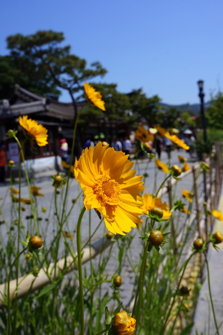 들꽃들 역시 마찬가지입니다. 봄의 들꽃은 다채로우면서도 여린 파스텔 톤의 빛깔로 피어나지만, 따가운 햇살과 맞서 피어나는 여름 들꽃은 선명한 색채를 뽐냅니다. 관심을 가지고 자세히 들여다봐야 신원을 파악할 수 있는 봄의 들꽃과는 달리 원색으로 빛나는 여름 들꽃은 상대적으로 쉽게 눈에 띄는 편이죠. 이맘 때 피어나 가을 직전까지 햇살이 내리쬐는 길가를 샛노란 색으로 채우는 금계국(金鷄菊)은 여름을 알리는 대표적인 들꽃입니다.