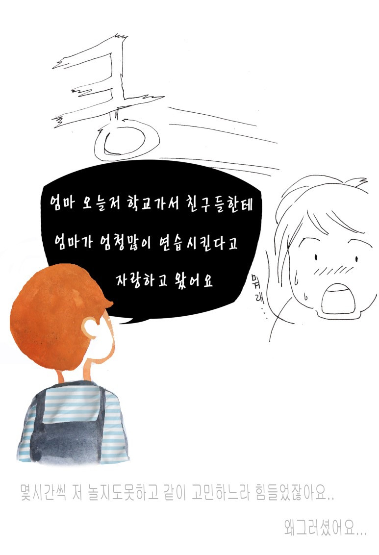 어제는 너 선곡해주고 연습동영상 찾아주려고한거지 절대 엄마가 너 연습많이 시킬생각없다규~~~!