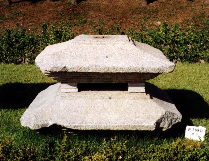 석탑 옥개석(왼)과 탑신석(오) (국립중앙박물관)