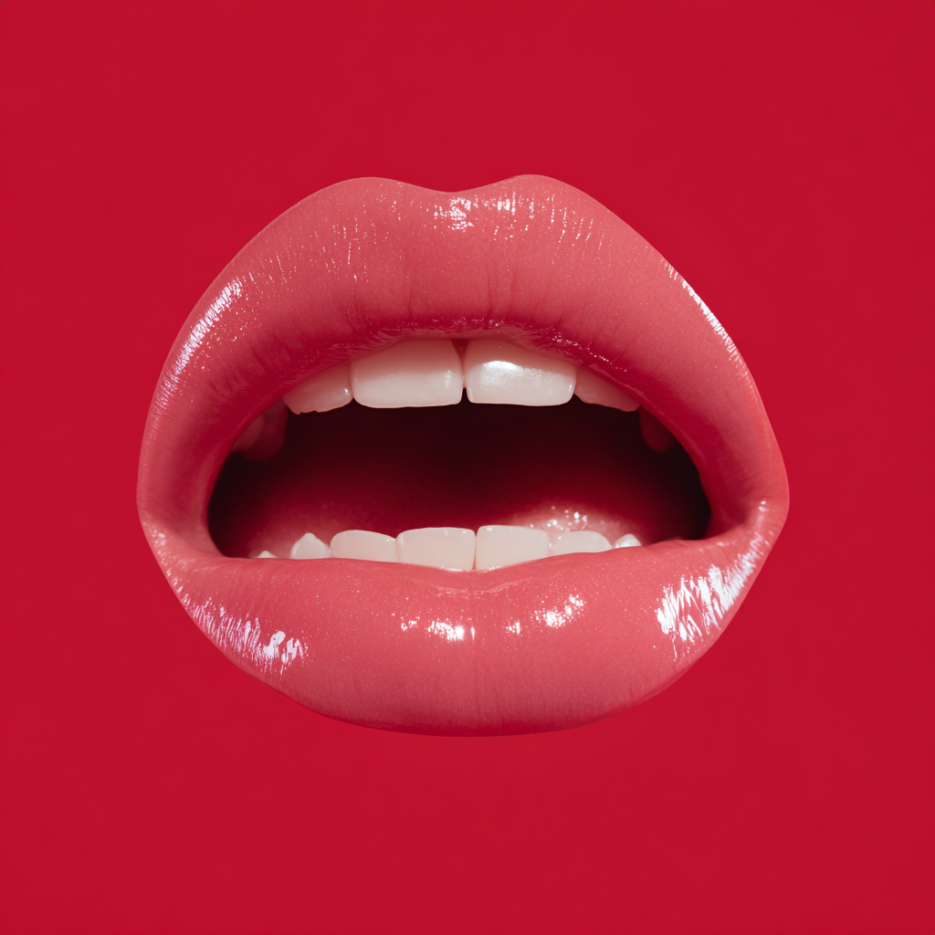 2D Pink Lips with Teeth on Red Background --v 7