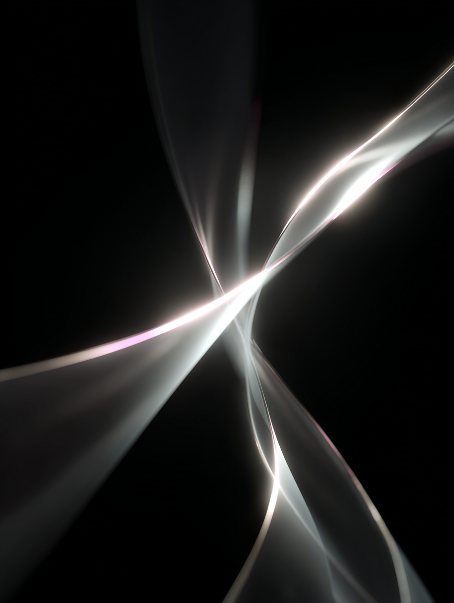 Prompt: A minimal abstract image on a black background, showing soft flowing lines of light intersecting like neural pathways, symbolizing hybrid thinking and creative intelligence. Elegant, cinematic lighting, matte texture, no text.