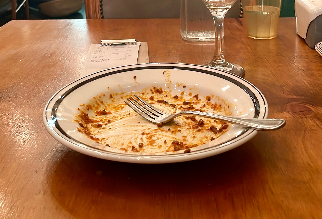 첫 번째 손님이 되어 약 15분 정도 기다렸다. 갓 조리된 소스가 얹어진 하얀 김이 모락모락 나는 라구파스타가 나왔다. 토마토와 바질잎, 당근이 보였습니다. 스파게티 면에 소스가 깊게 배어 있었고, 소스는 오래 끓였는지 잔뜩 하고 매우 부드러웠다. 그리고 오일과 소기름이 풍부하게 들어간 것 같았다.